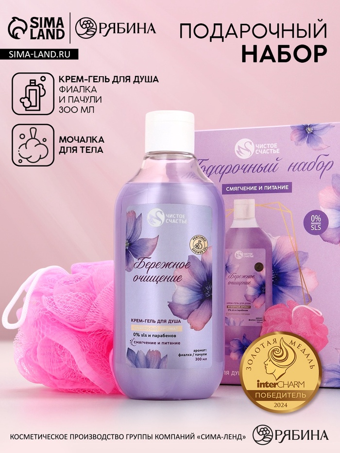 Составляющие набора: Мочалка, Гель для душа