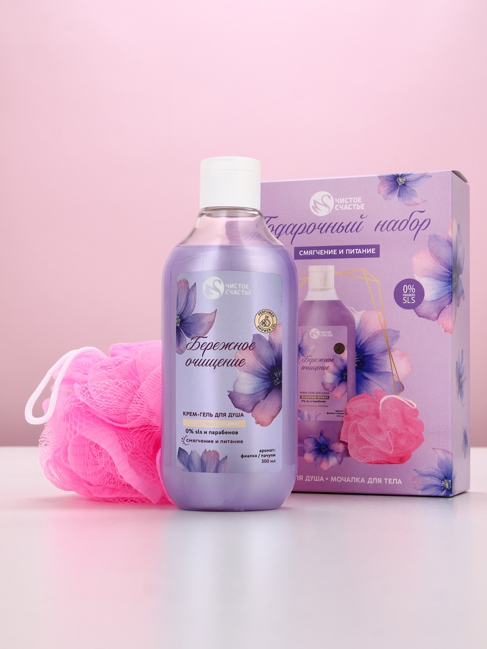 Подарочный набор «Смягчение и питание», крем-гель для душа 300 мл и мочалка для тела