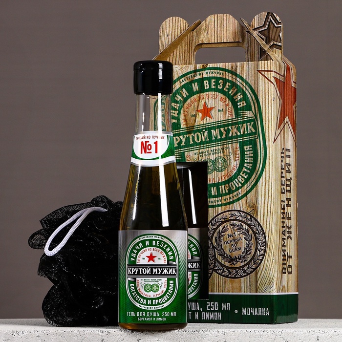 Подарочный набор «Удачи и везения»: гель для душа пиво 250 мл и мочалка для тела, Чистое счастье