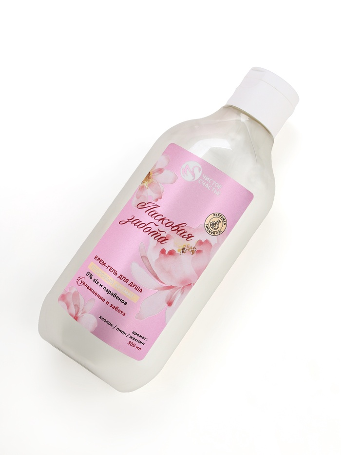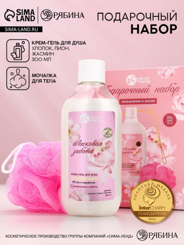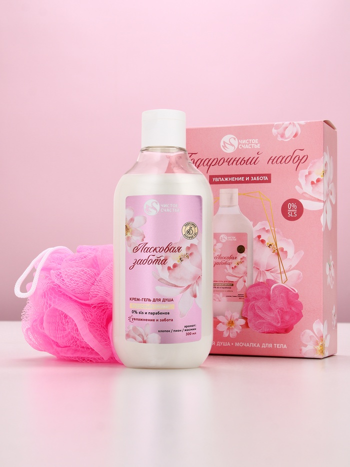 Подарочный набор «Увлажнение и забота», крем-гель для душа 300 мл и мочалка для тела, Чистое счастье