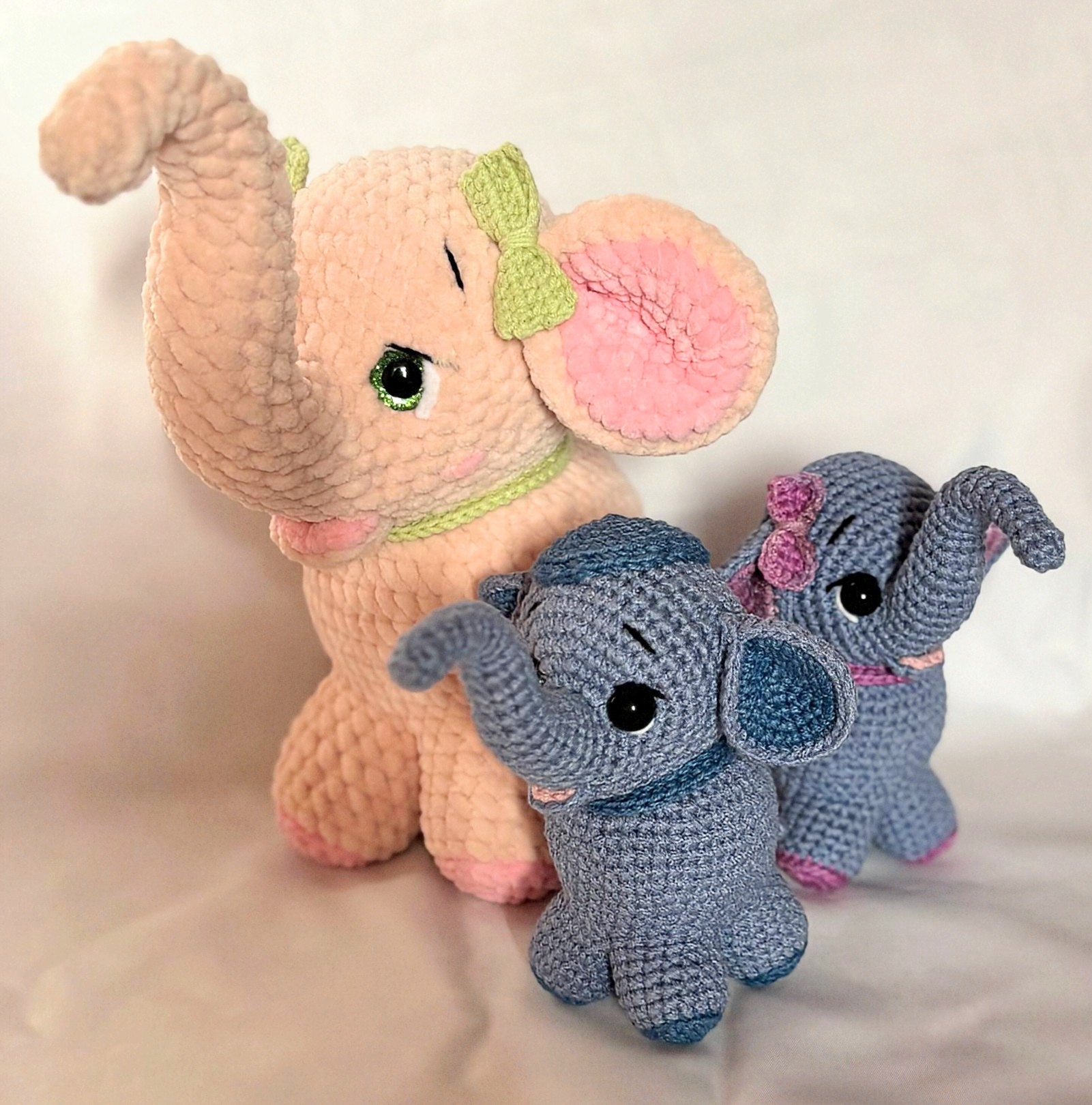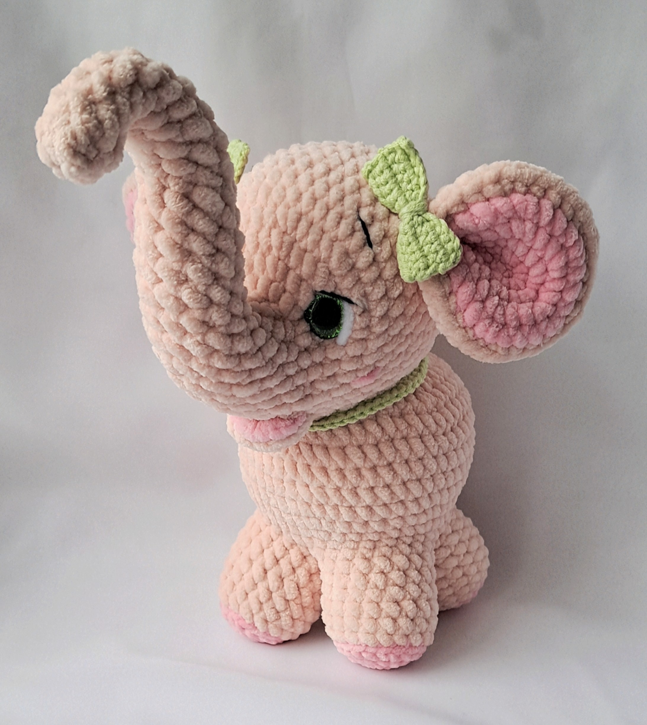 Слоник связан из плюшевой гипоаллергенной пряжи.