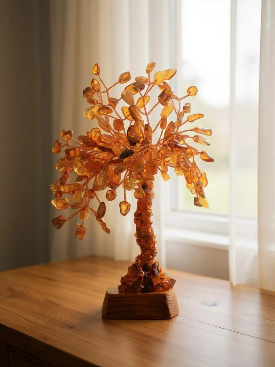 Денежное деревце из натурального янтаря на подставке