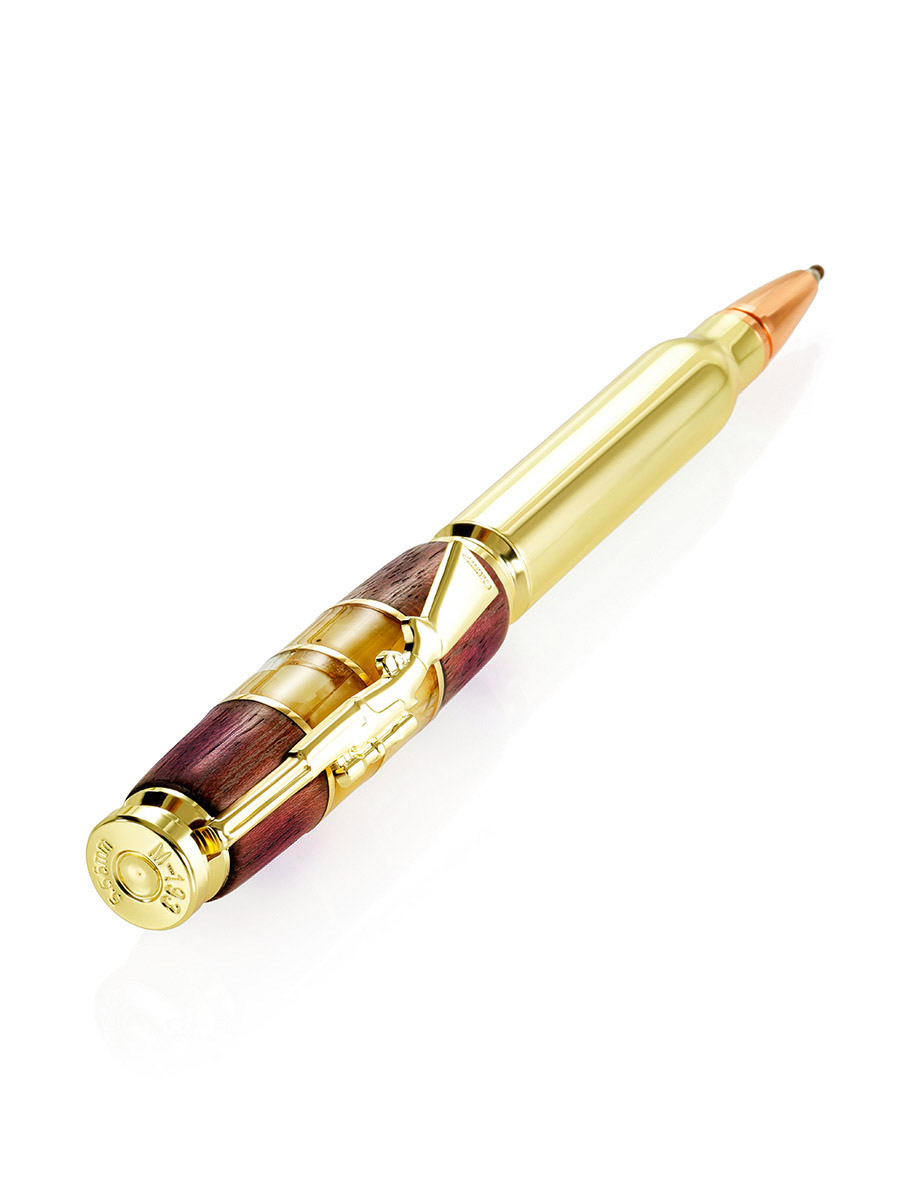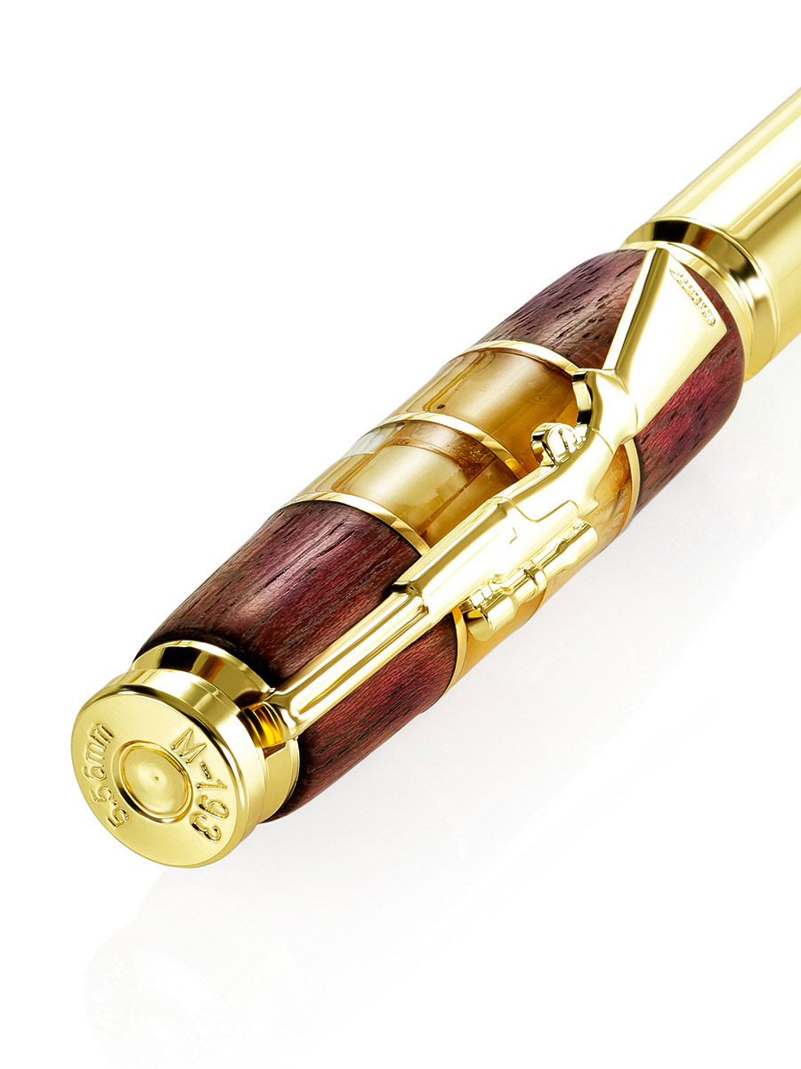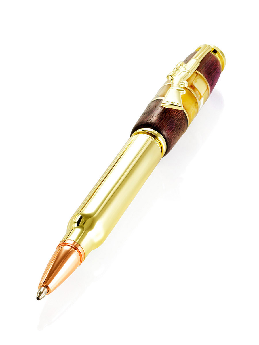 Дизайнерская авторучка с натуральным янтарём и деревом