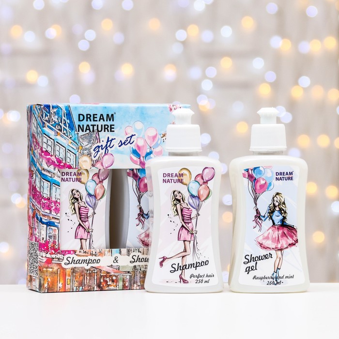 Подарочный набор косметики DreamNature: шампунь для чувствительной кожи головы, 250 мл + гель для душа, 250 мл