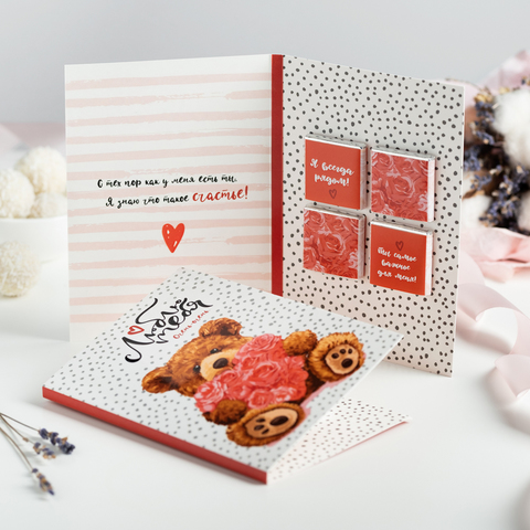 Открытка 4 шоколадки "Люблю тебя очень-очень (плюшевый мишка)"