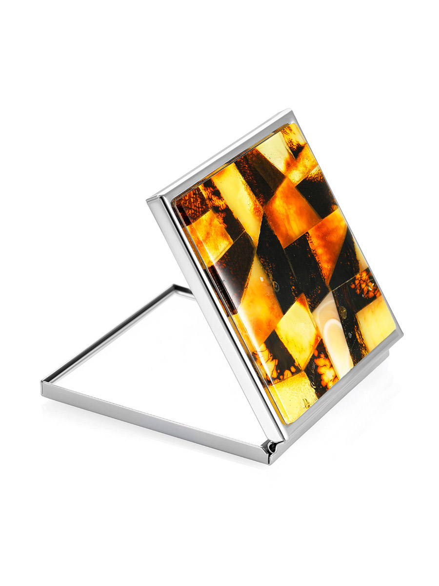 Двухстороннее складное зеркало с крышкой, украшенной янтарной мозаикой