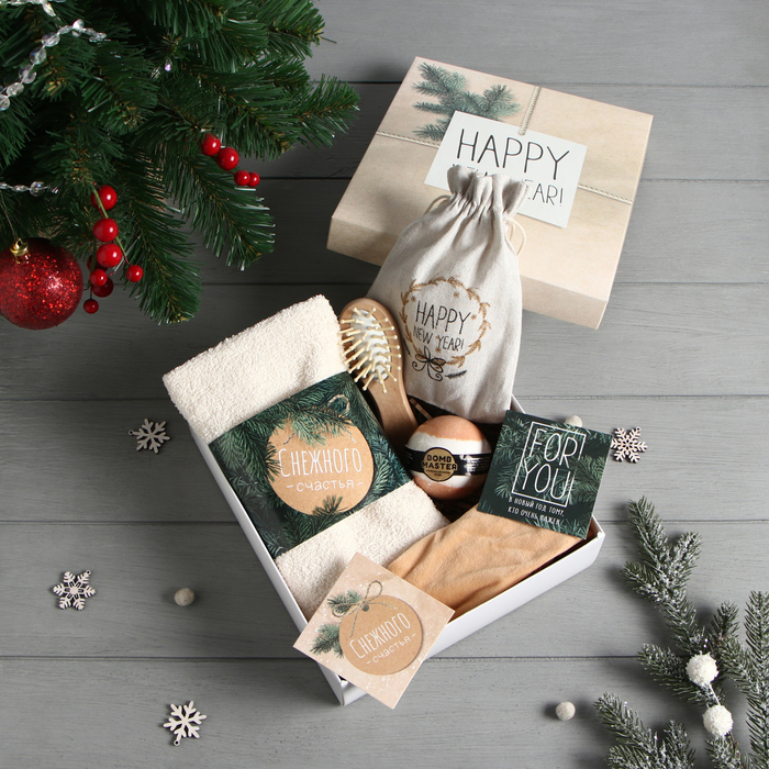 Набор новогодний подарочный «Этель» Happy new year, 5 предметов, полотенце, расчёска, повязка