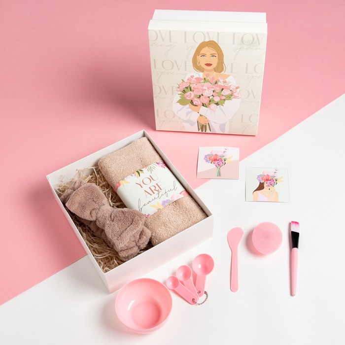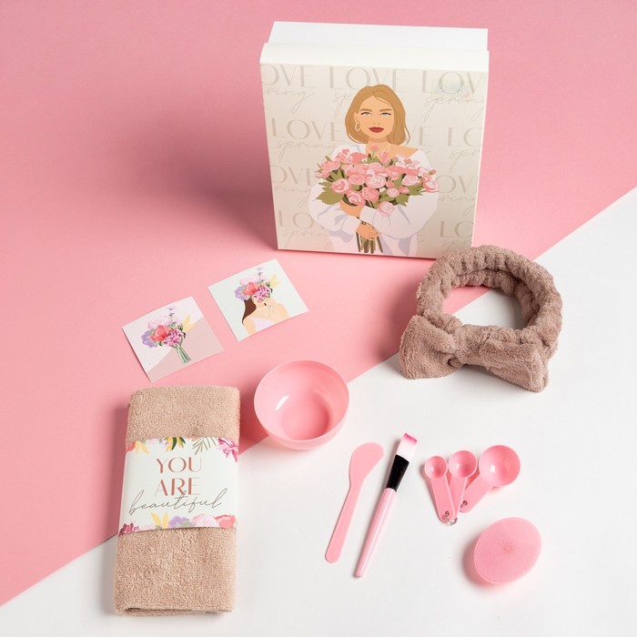 Составляющие набора: Повязка, Открытка, Ложка, Миска, Лопатка, Полотенце, Спонж, Кисть