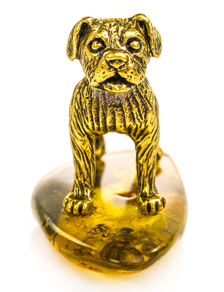 Размеры камня (мм): 50х23х6 Вес и..показатьзделия (г): 23 Размер / длина (см): 4.5 Цвет: медовый / лимонный / коньячный Материалы: Натуральный янтарь / Латунь Коллекция: Новогодние талисманыСувенирная собака с натуральным цельным балтийским янтарём «Боксёр»: 705511175