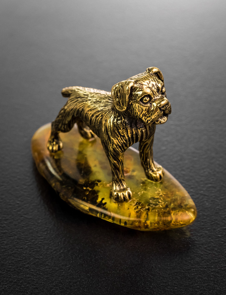 Фигурка на подставке из янтаря «Боксёр»