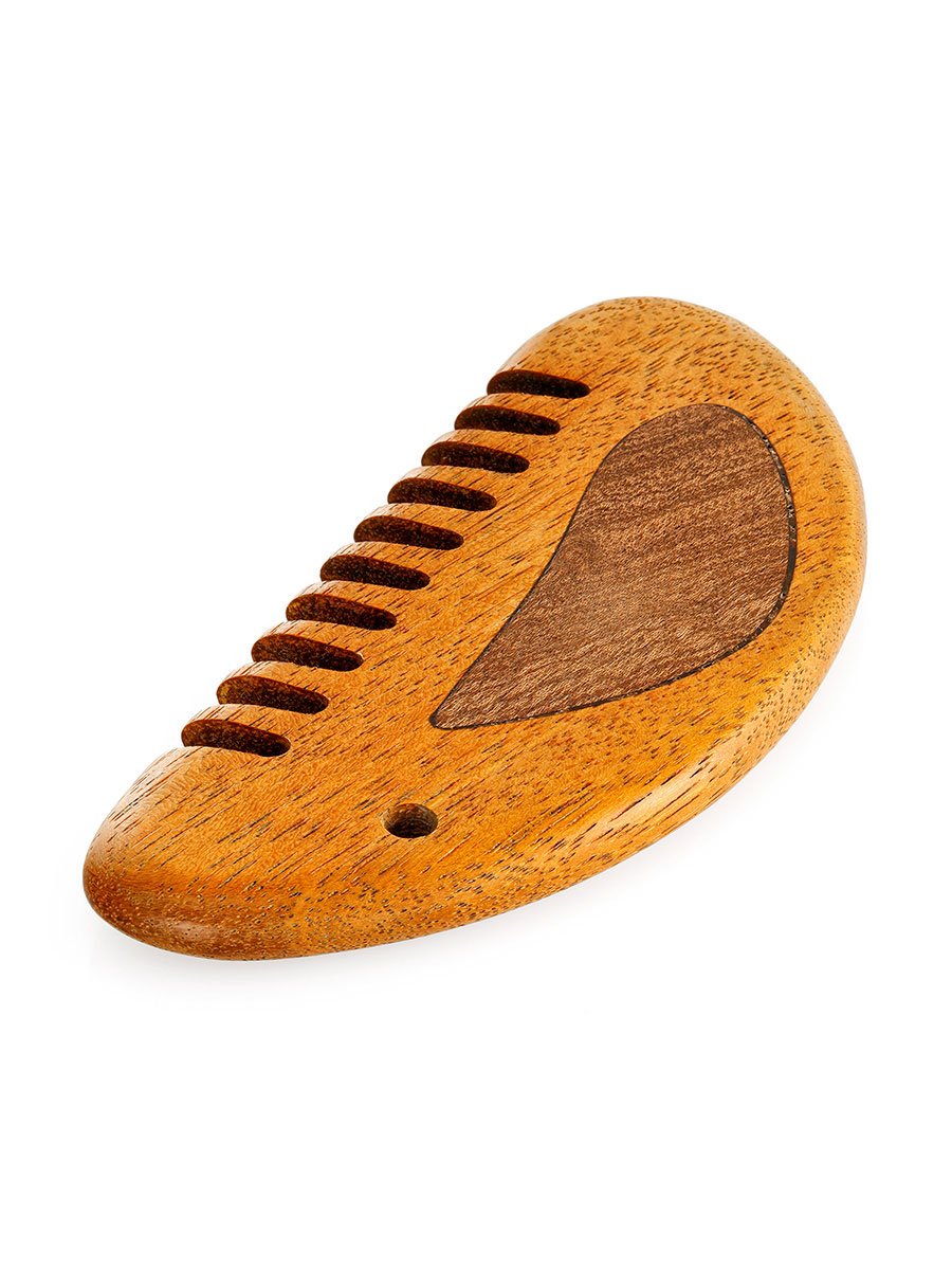 Гребень для волос из дерева, украшенный натуральным янтарём