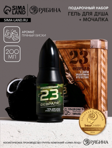 Подарочный набор «23 Февраля»: гель для душа 200 мл и мочалка для тела, HARD LINE