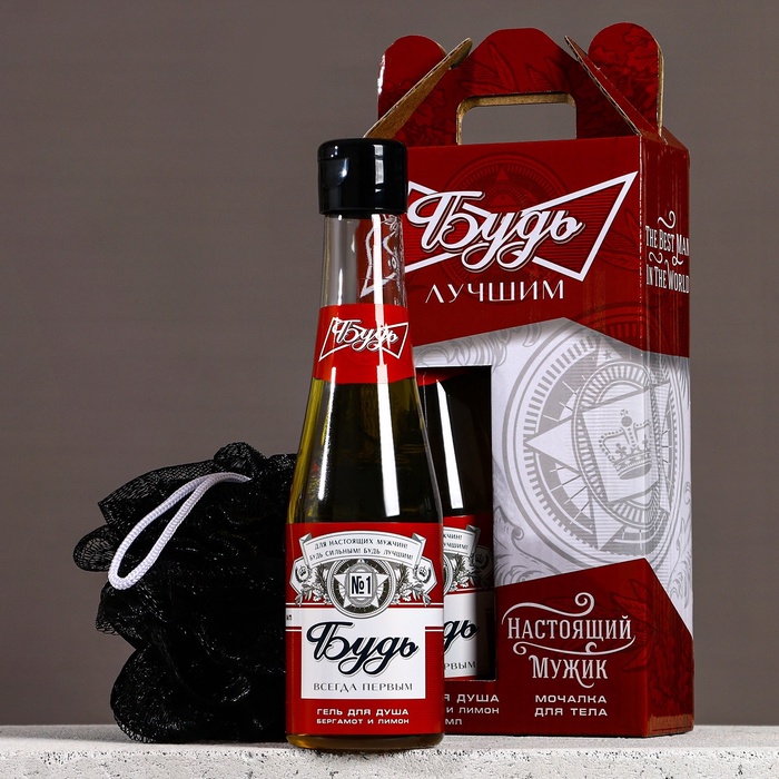 Подарочный набор «Будь лучшим!»: гель для душа пиво 250 мл и мочалка для тела, HARD LINE