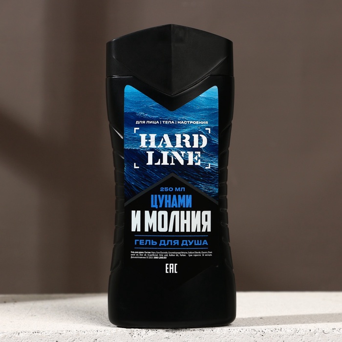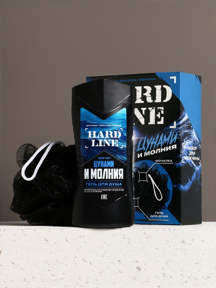 Подарочный набор косметики «Цунами и молния», гель для душа 250 мл и мочалка для тела, HARD LINE