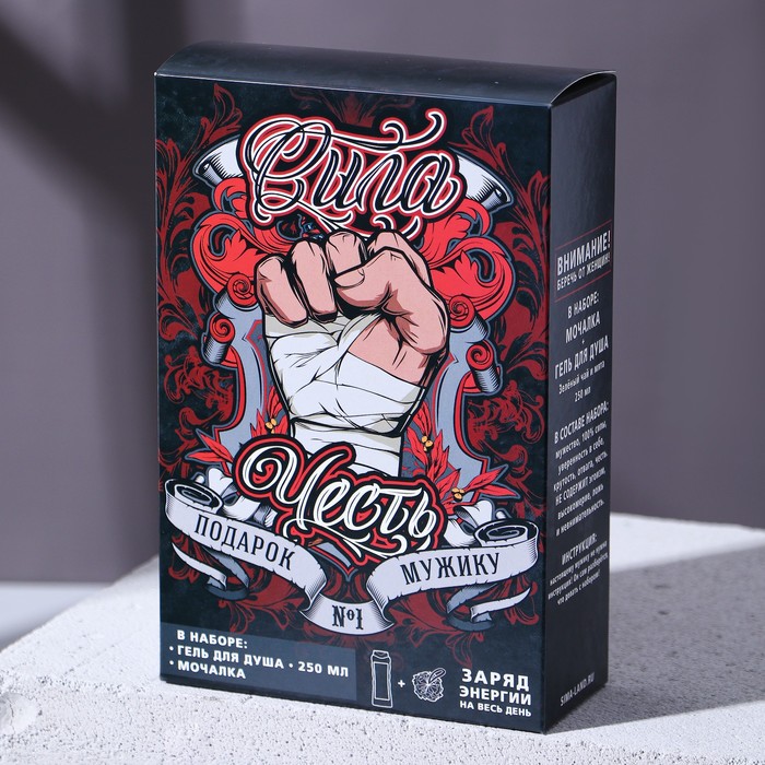 Подарочный набор «Сила и честь», гель для душа 250 мл, аромат ледяная свежесть, мочалка
