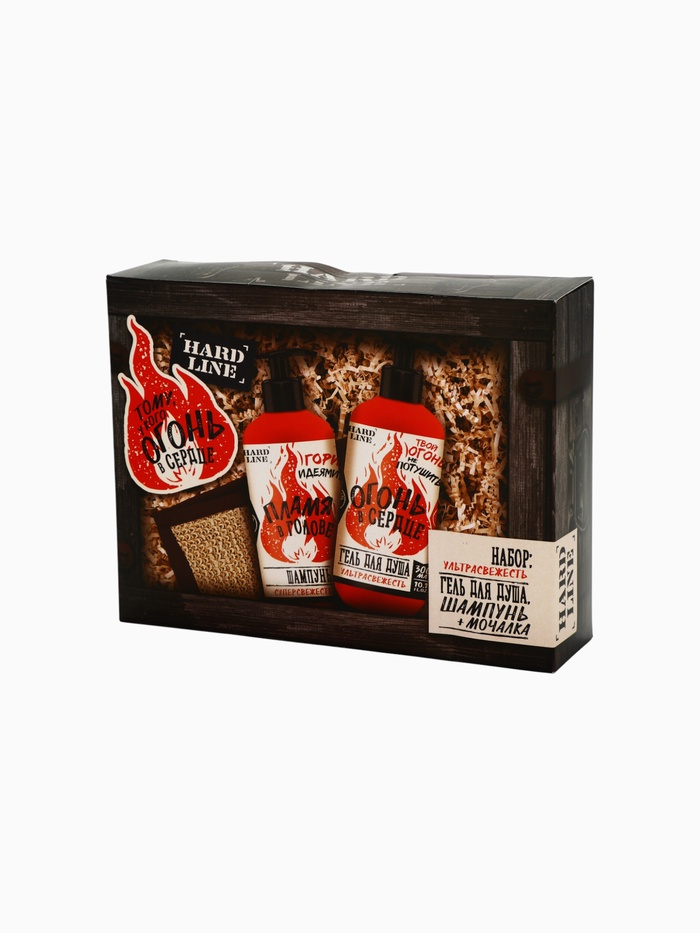 УЦЕНКА Набор «Тому, у кого огонь в сердце», гель для душа и шампунь, 2×300, мочалка с ручками 986754