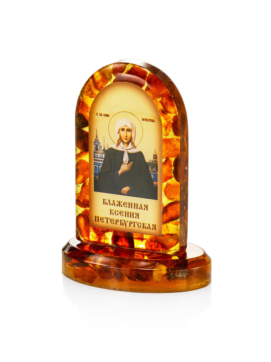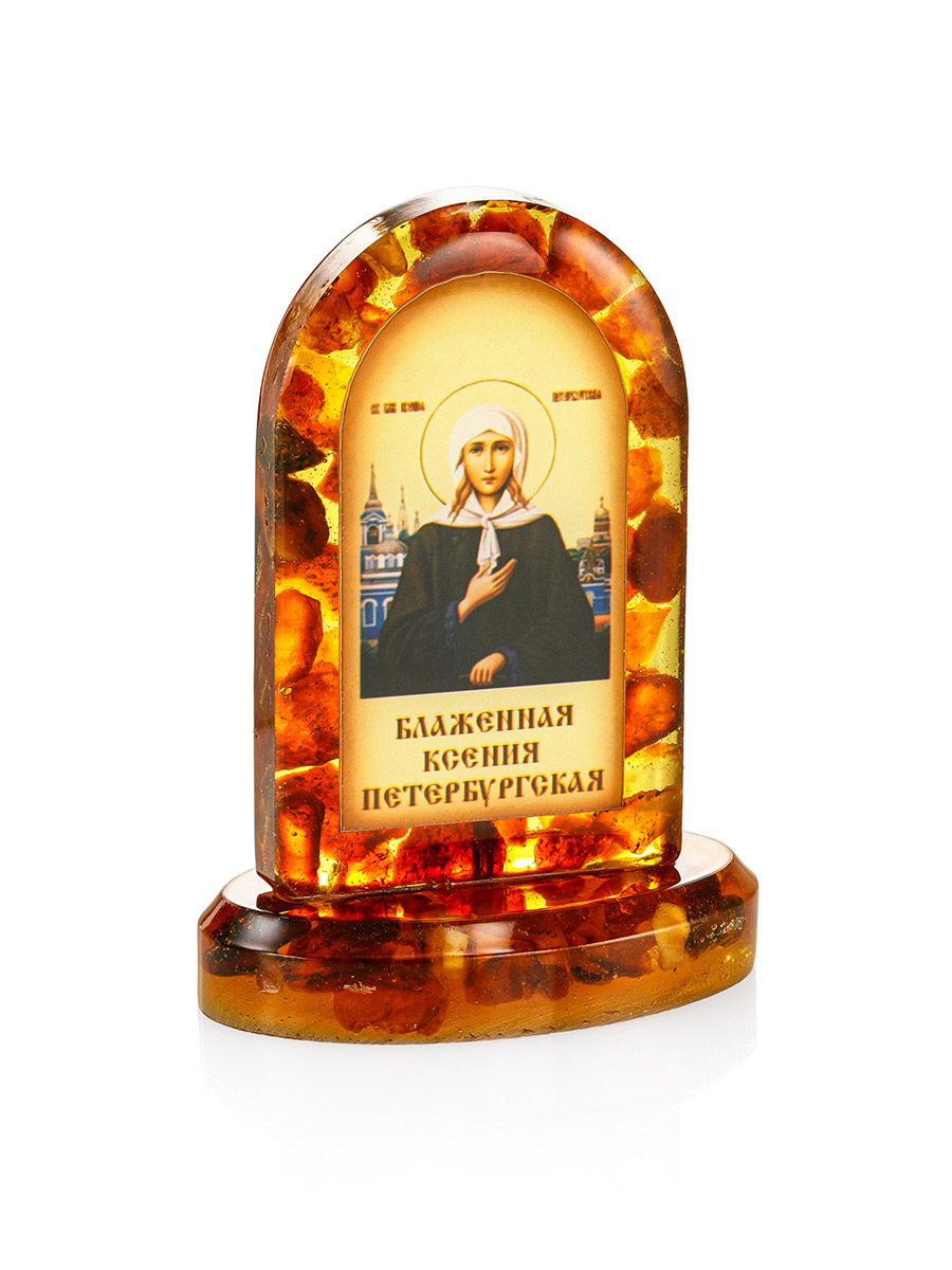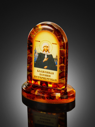Икона «Блаженная Ксения Петербуржская» в литой оправе с янтарём