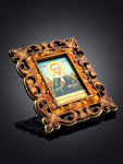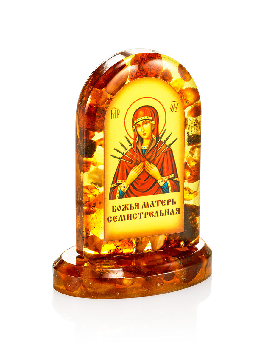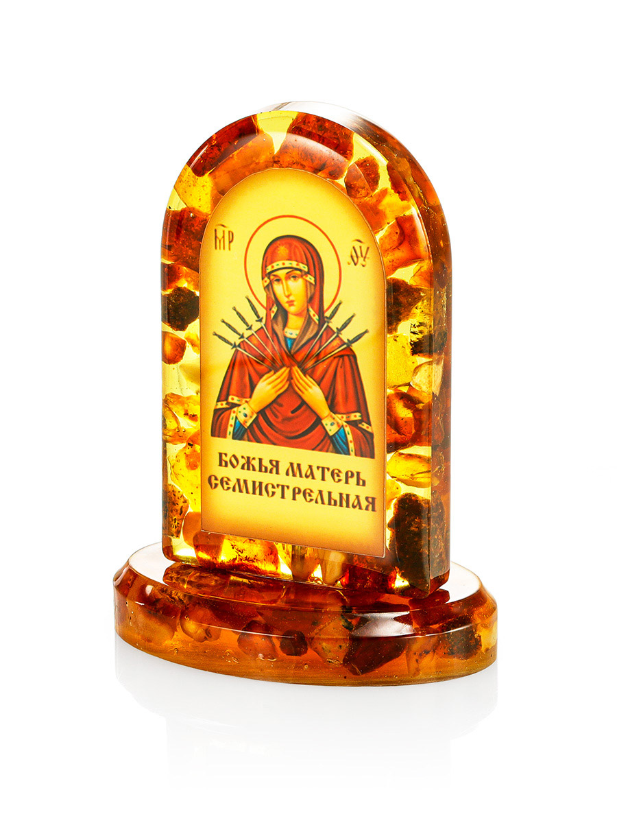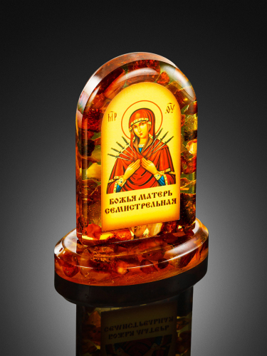 Икона Богоматери «Семистрельная» в литой оправе с янтарём