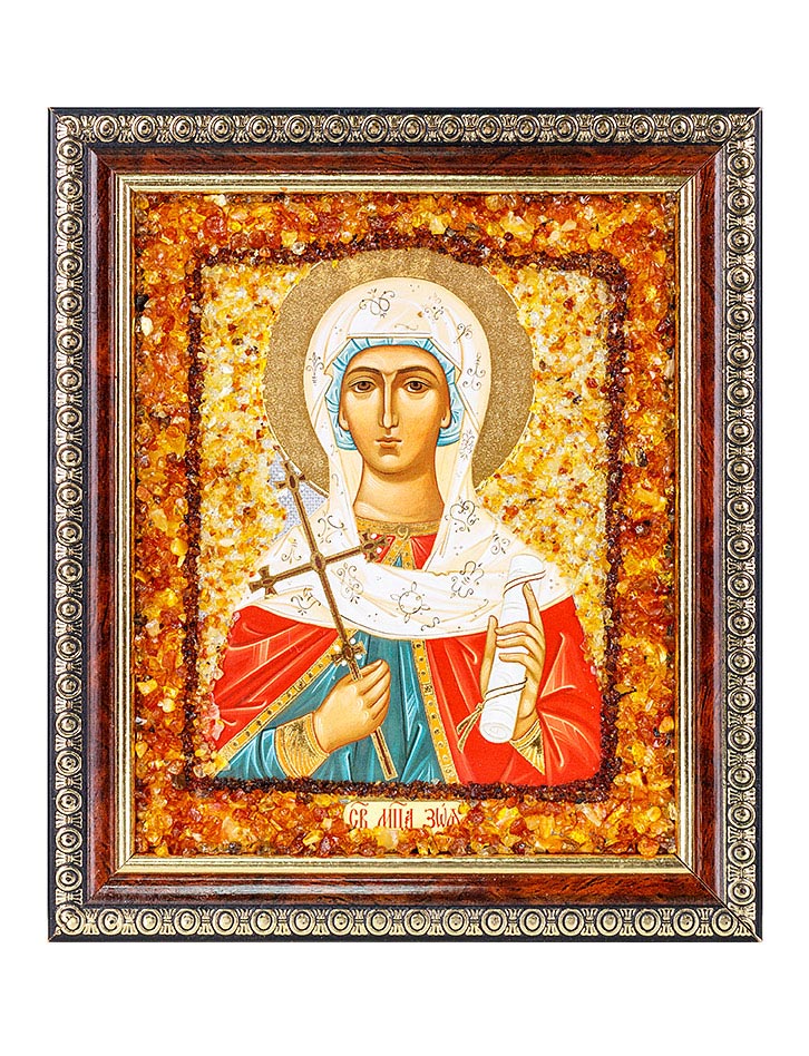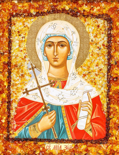 Икона, украшенная россыпью янтаря «Святая мученица Зоя»