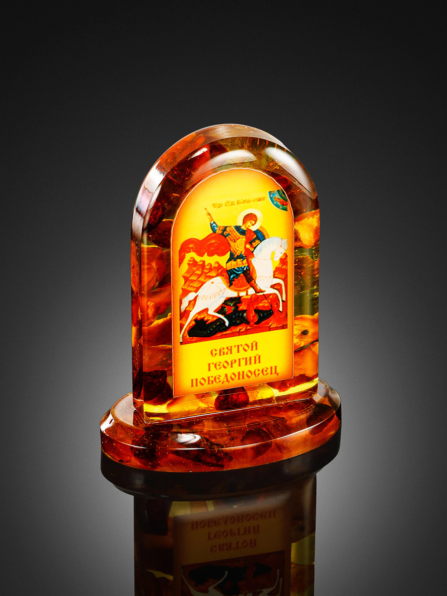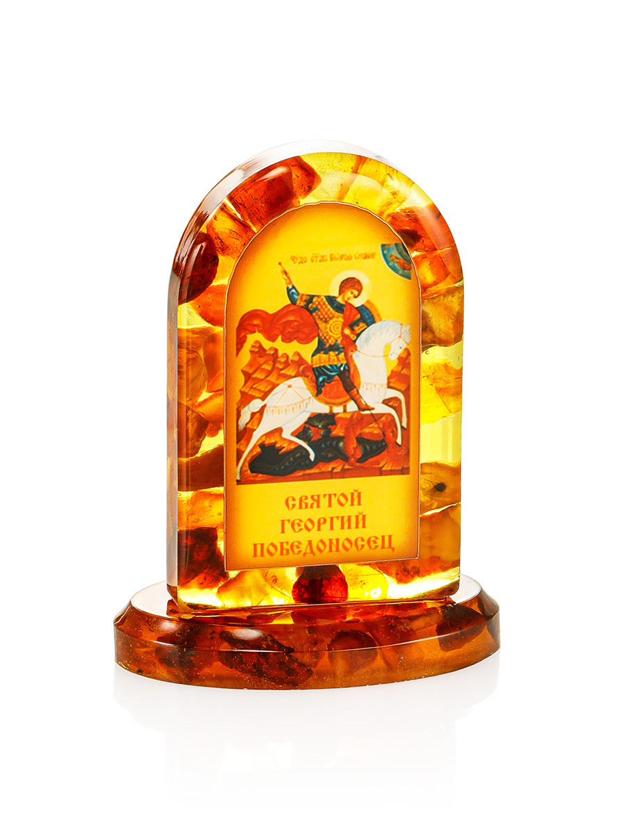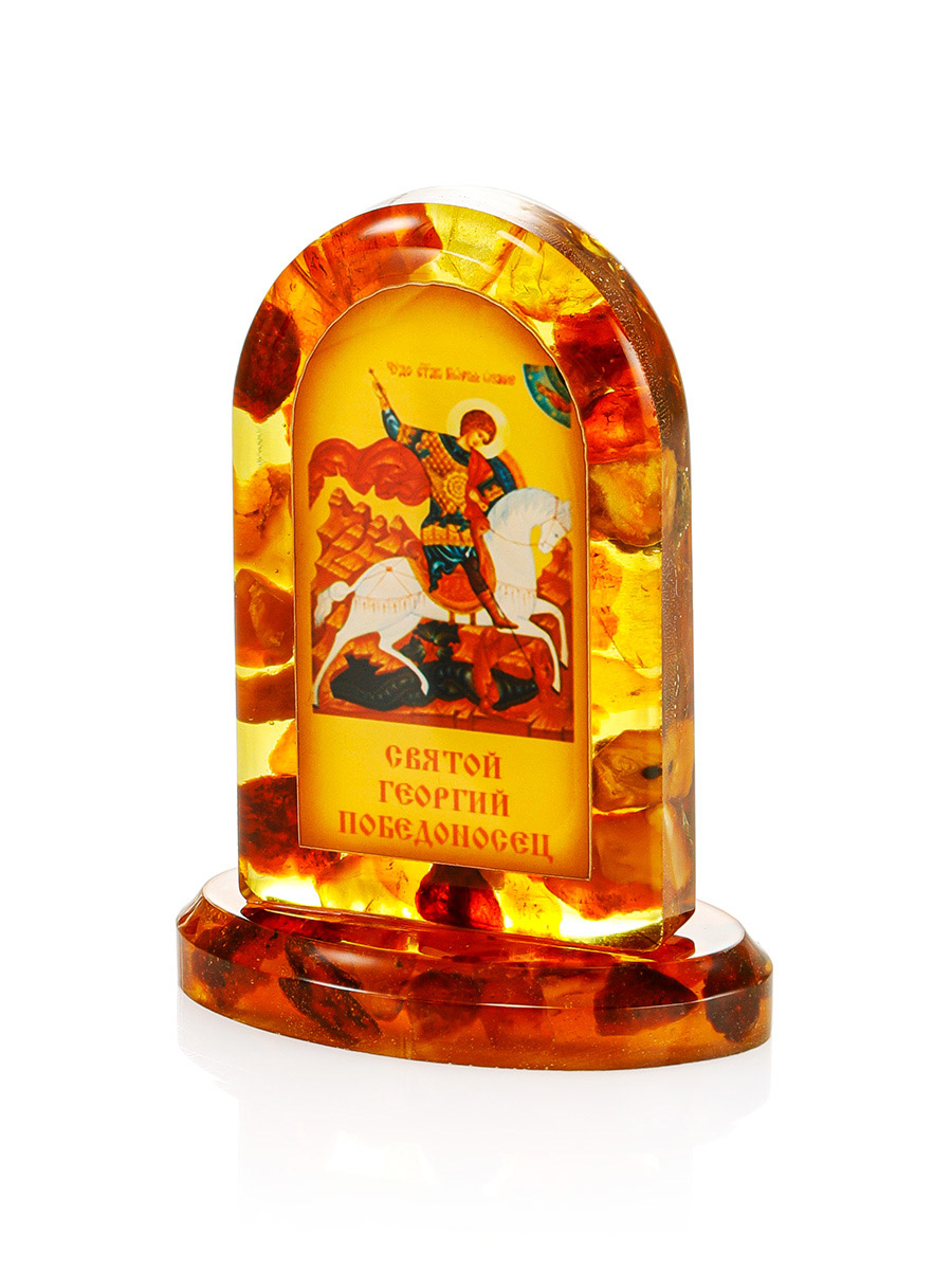 Иконка в мозаичной янтарной стойке «Святой Георгий Победоносец»