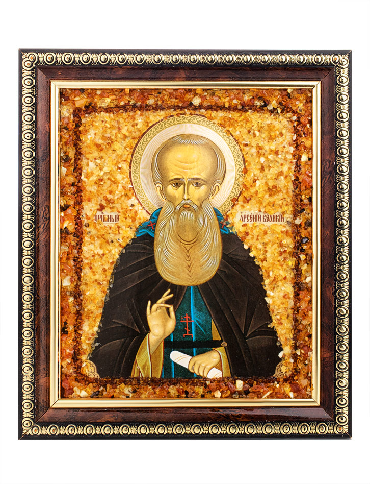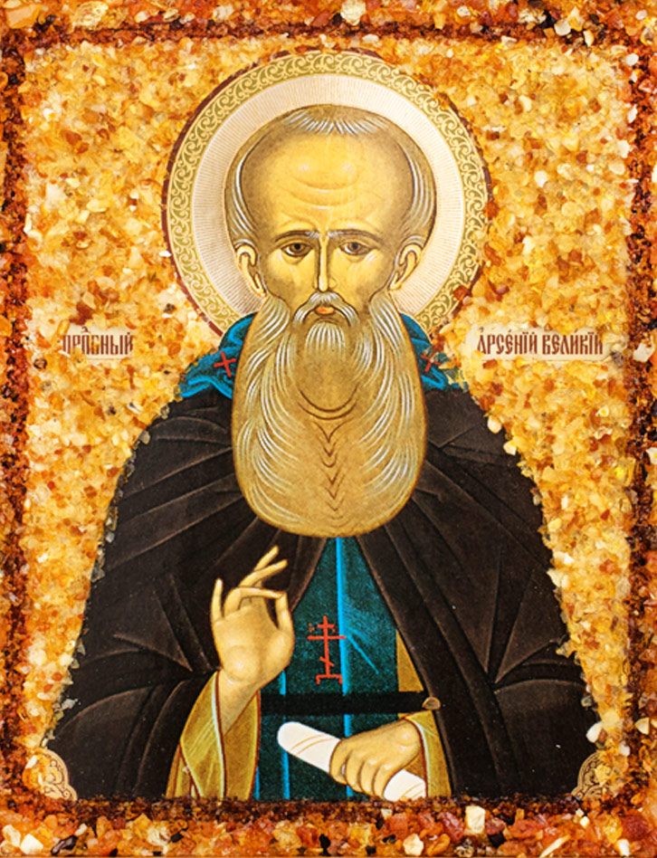 Именная икона, украшенная натуральным янтарём «Преподобный Арсений Великий»