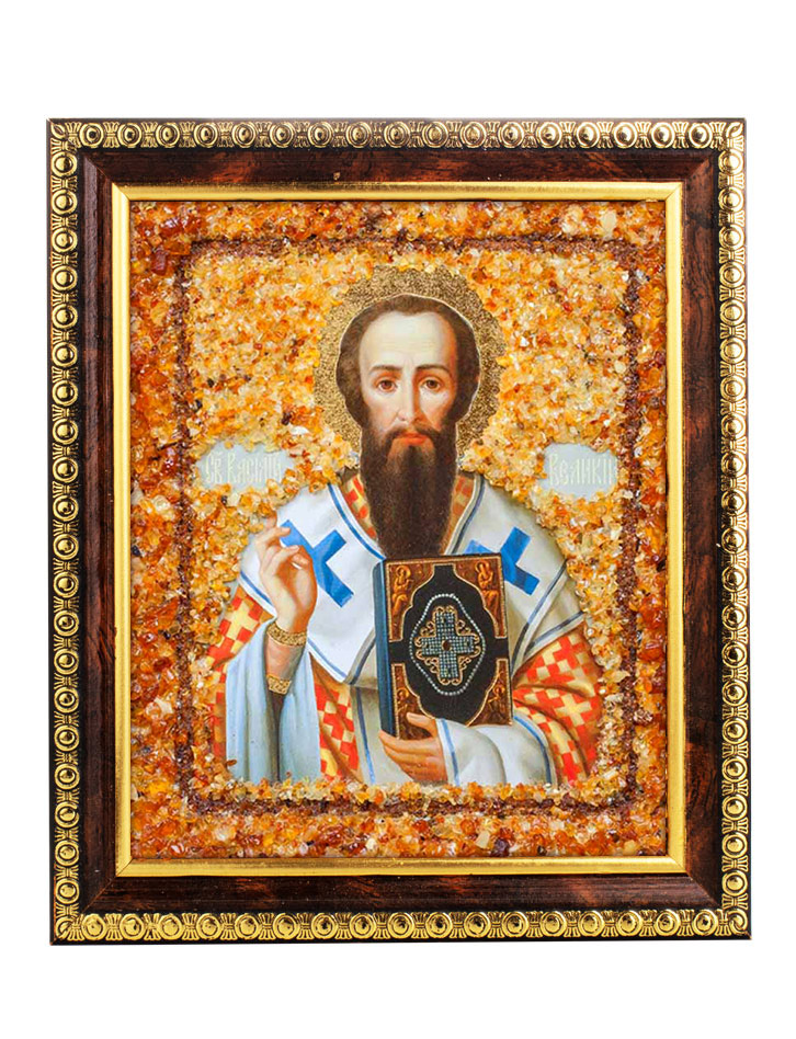 Именная икона, украшенная янтарём «Святой Василий Великий»