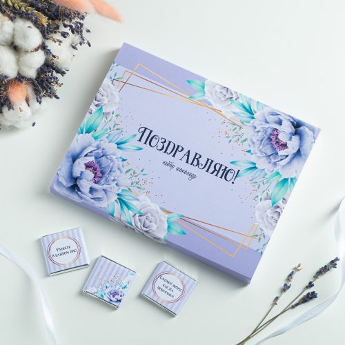 Набор 12 шоколадок "Поздравляю" сиреневый с цветами