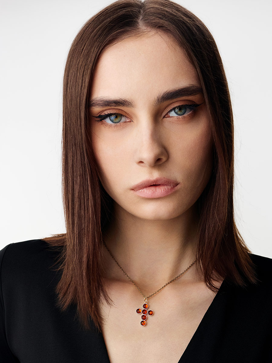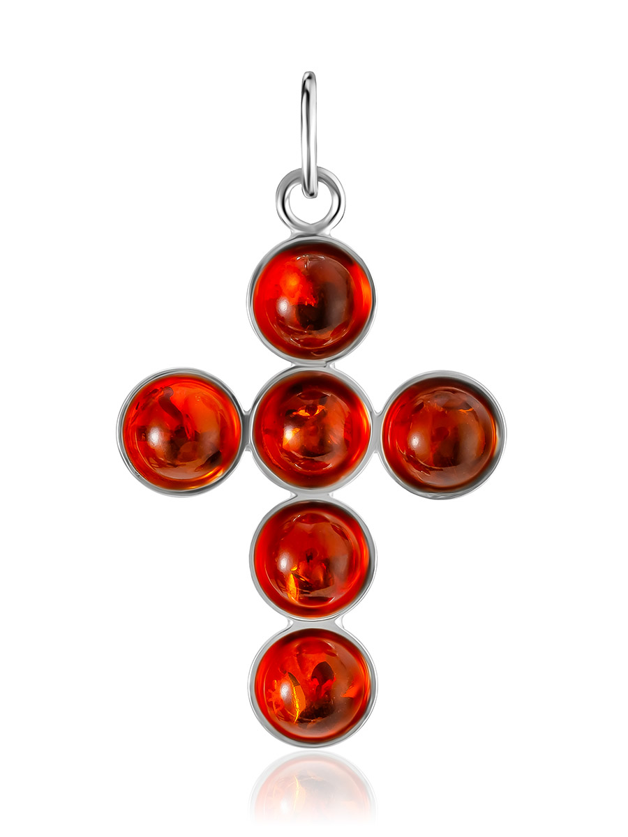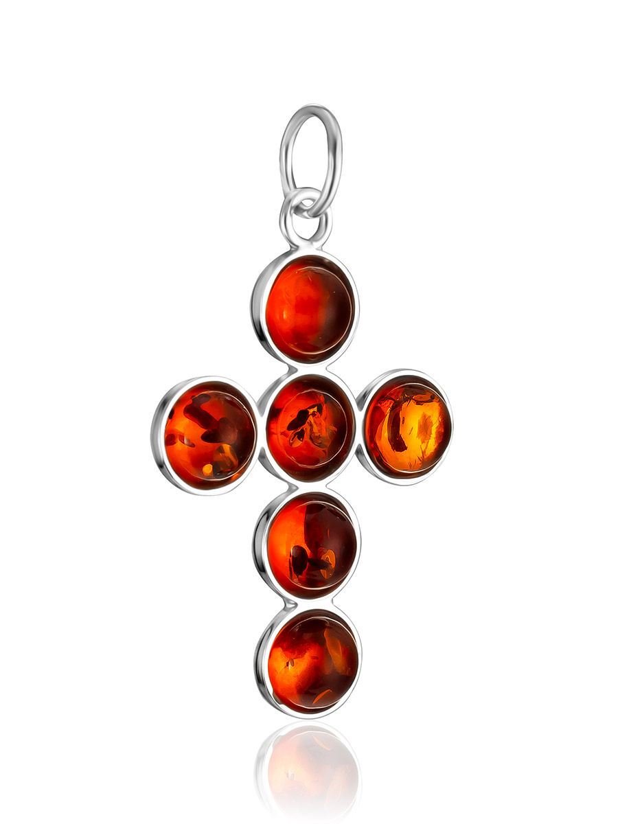 Изящный крест, украшенный кабошонами из коньячного янтаря