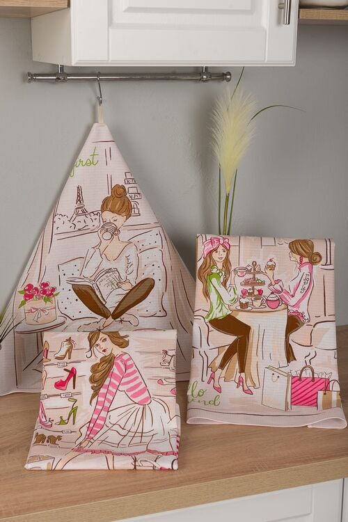 К-т полотенец "Девочки" 50*60 см. - 3 шт. вафля хлопок 100%