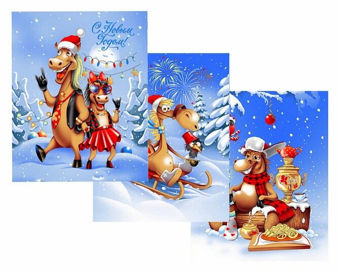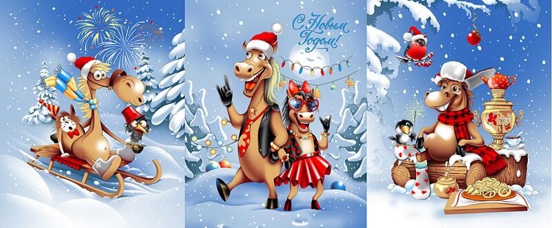 К-т полотенец "Год Лошади" 50*60 см. - 3 шт. вафля хлопок 100%