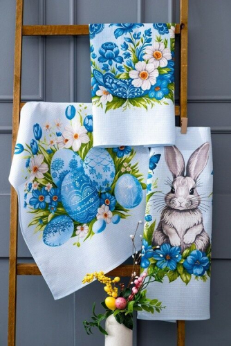 К-т полотенец "Готовимся к Пасхе" 50*60 см. - 3 шт. вафля хлопок 100%