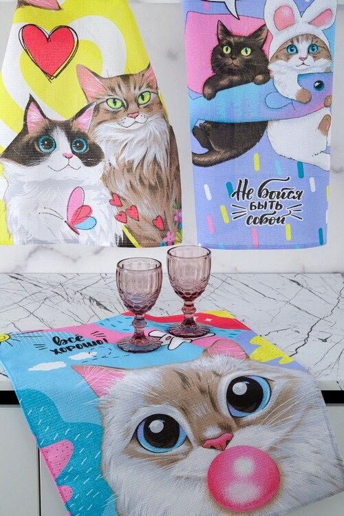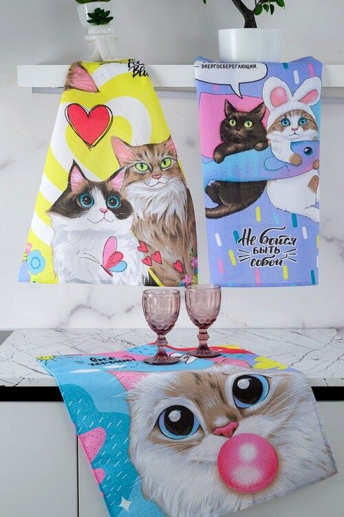 К-т полотенец "Кис-кис" 50*60 см. - 3 шт. вафля хлопок 100%