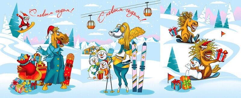К-т полотенец "Конь в пальто" 50*60 см. - 3 шт. вафля хлопок 100%