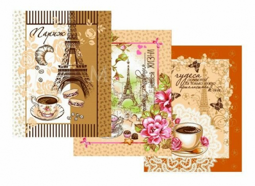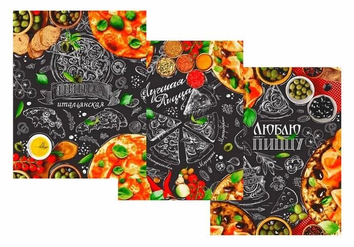 К-т полотенец "Пицца" 50*60 см. - 3 шт. вафля хлопок 100%