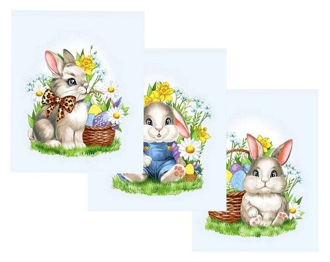 К-т полотенец "Зайчата" 50*60 см. - 3 шт. вафля хлопок 100%
