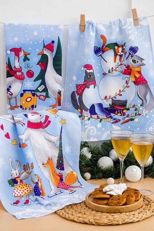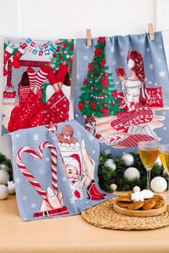К-т полотенец "Зимушка-зима" 50*60 см. - 3 шт. вафля хлопок 100%