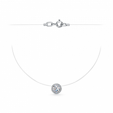 Колье (леска) родированное фианит серебро 925*
