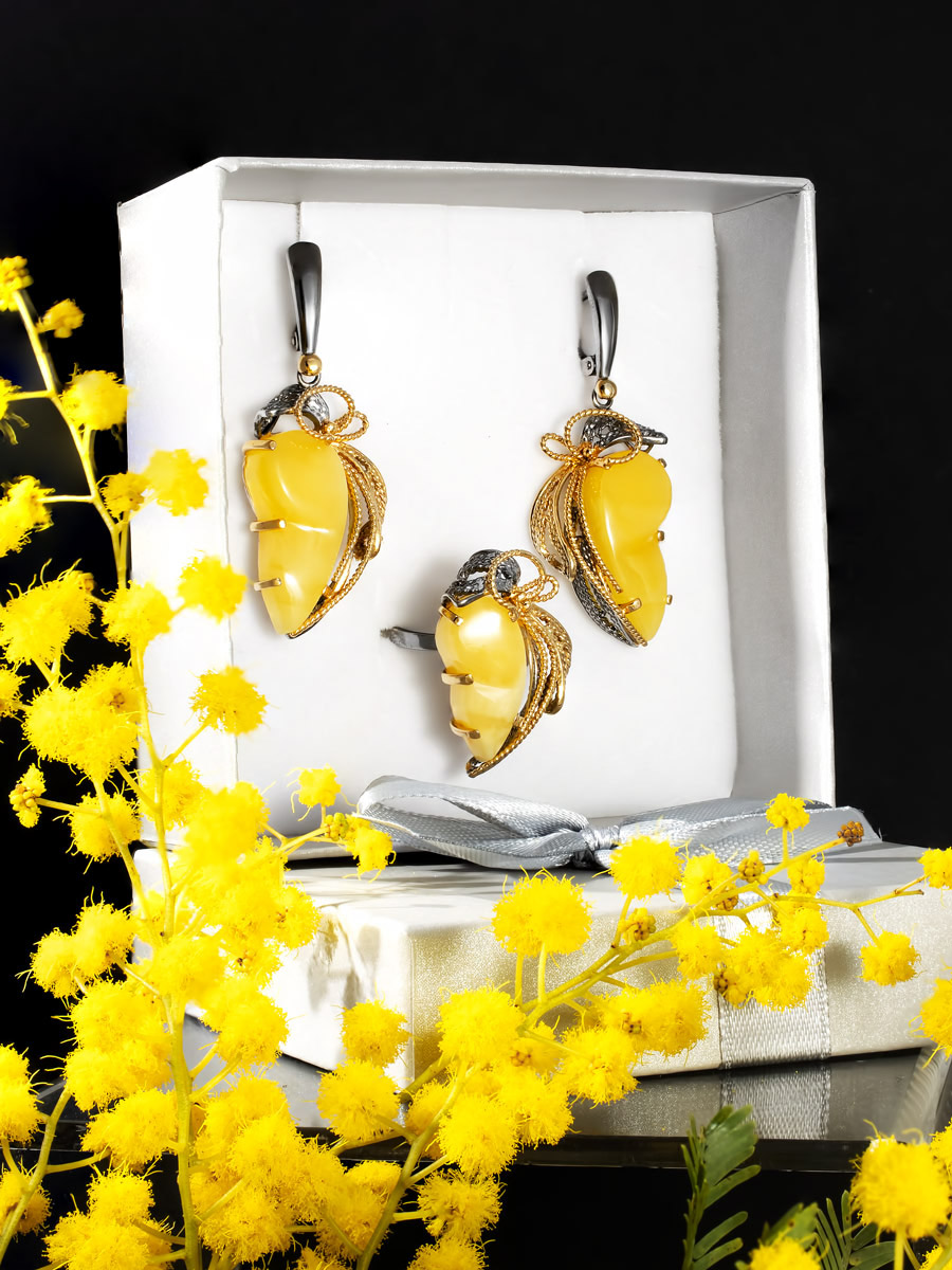 Комплект с медовым янтарём «Филигрань» в красивой подарочной коробочке