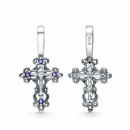 Крест с фианитом выборочно черненный серебро 925*
