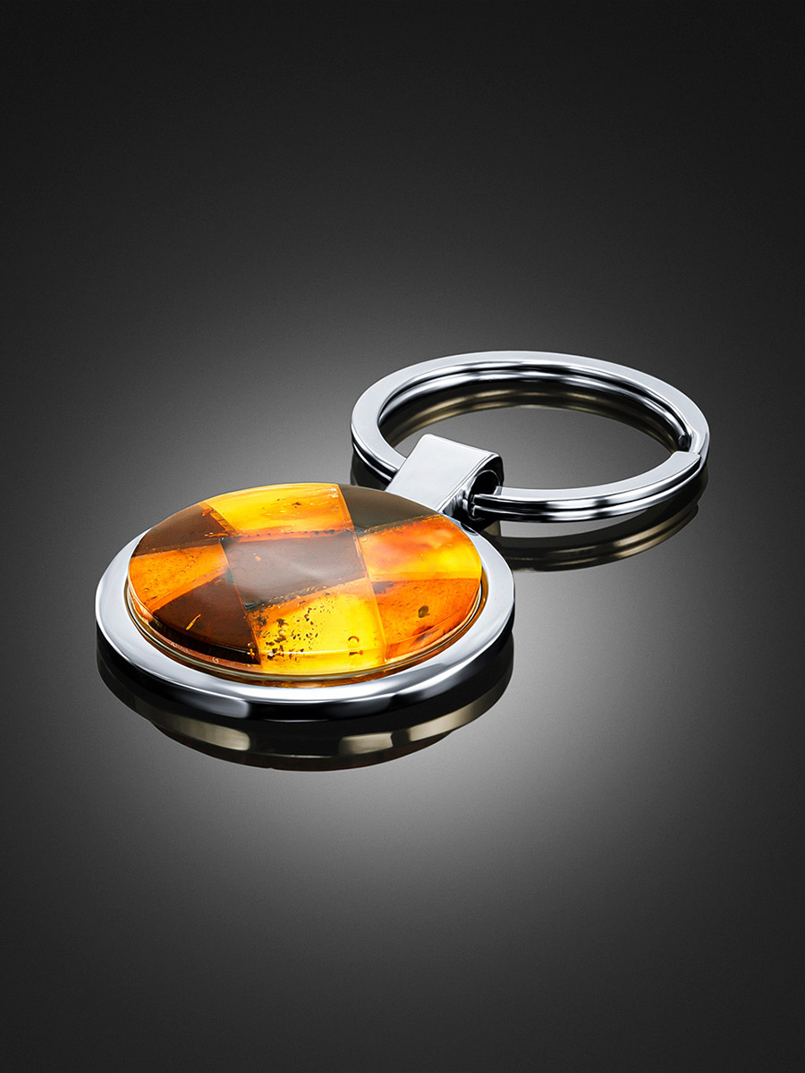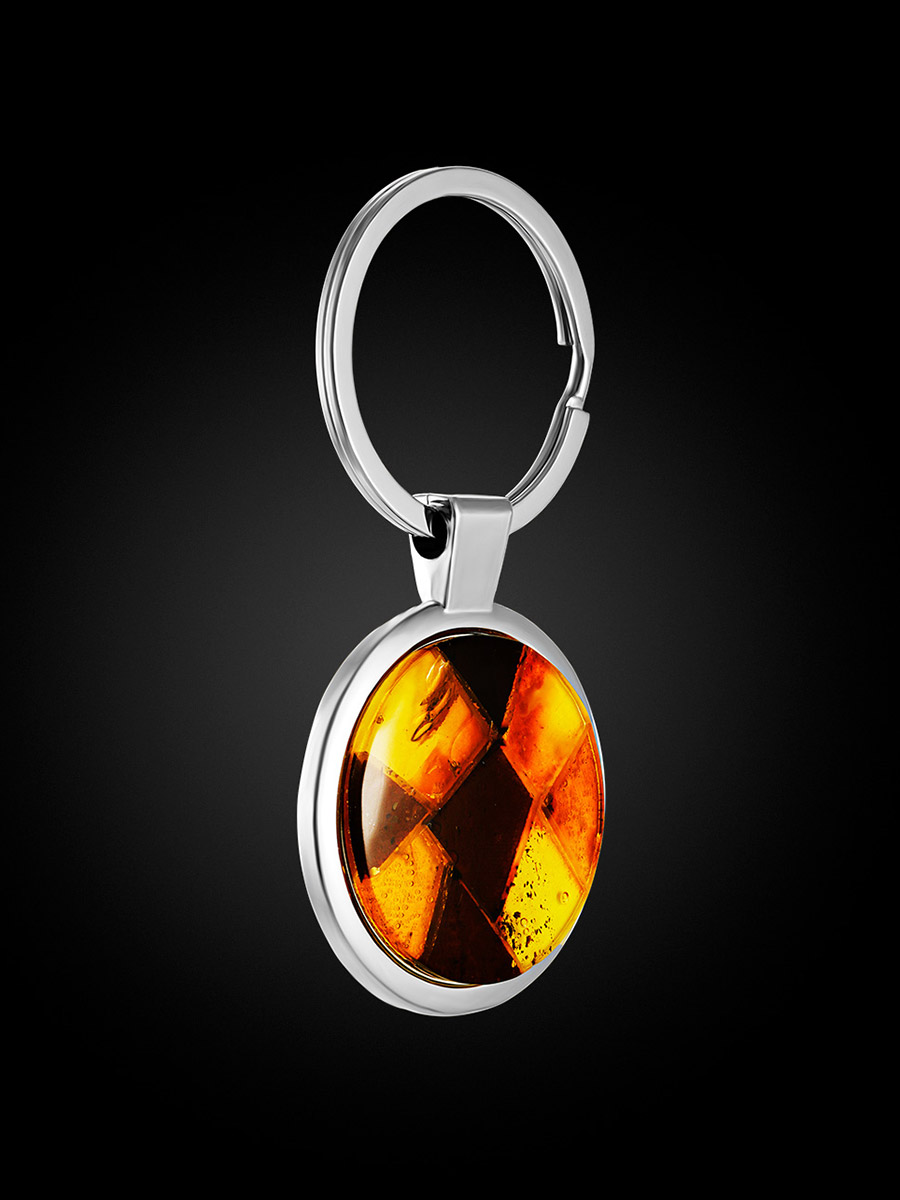 Круглый брелок для ключей, украшенный натуральным янтарём