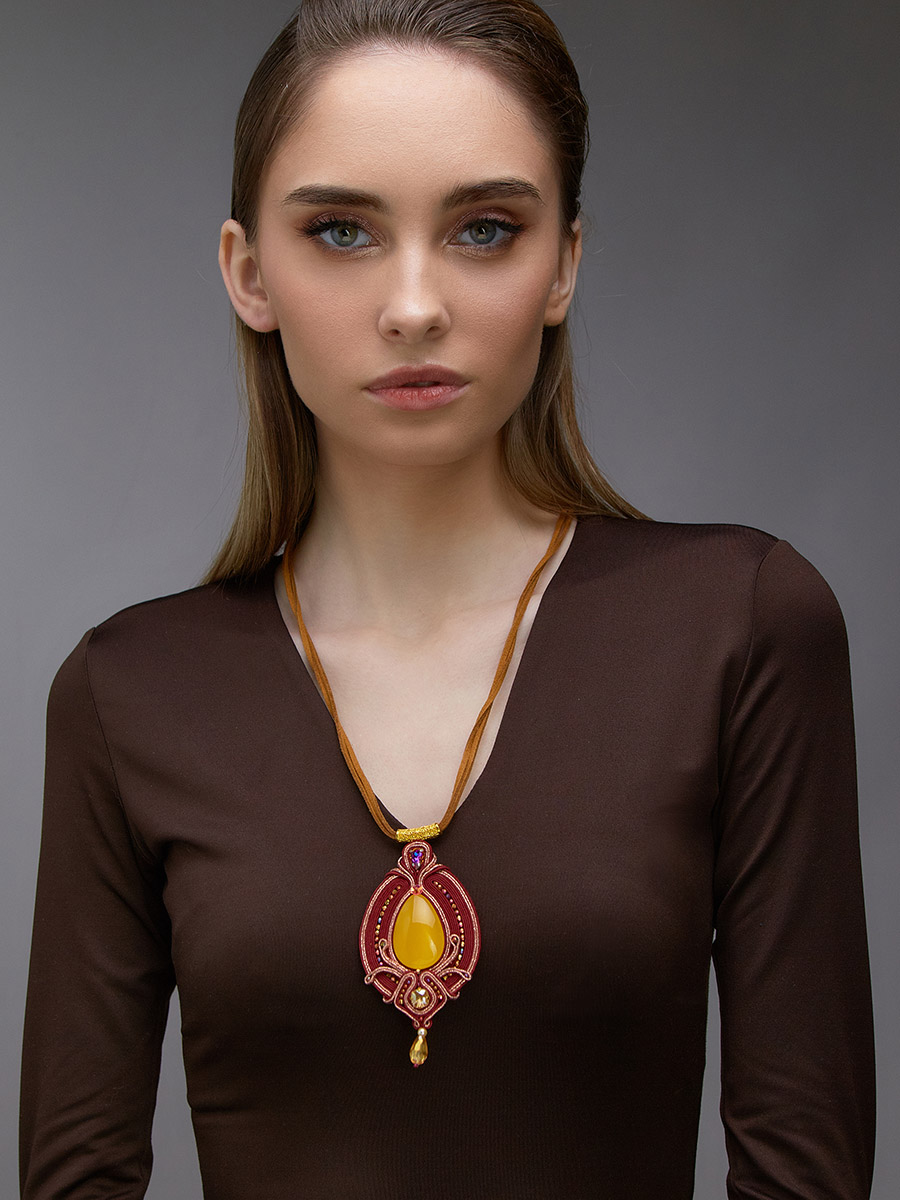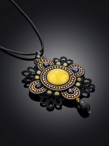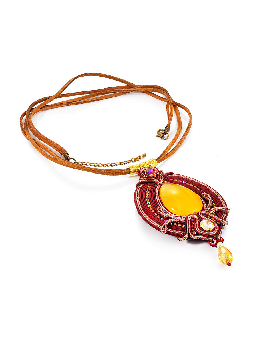 Крупная плетёная подвеска с медовым янтарём «Индия»