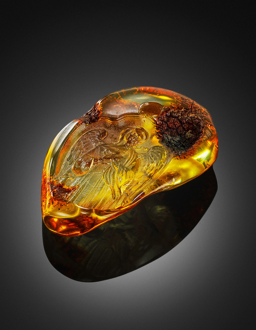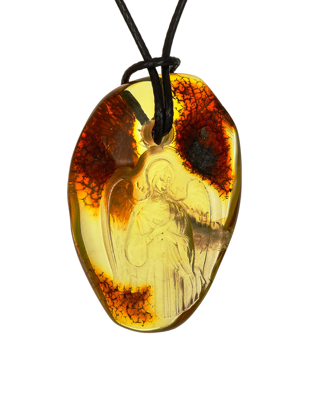 Кулон из натурального балтийского янтаря с резьбой «Ангел-Хранитель»