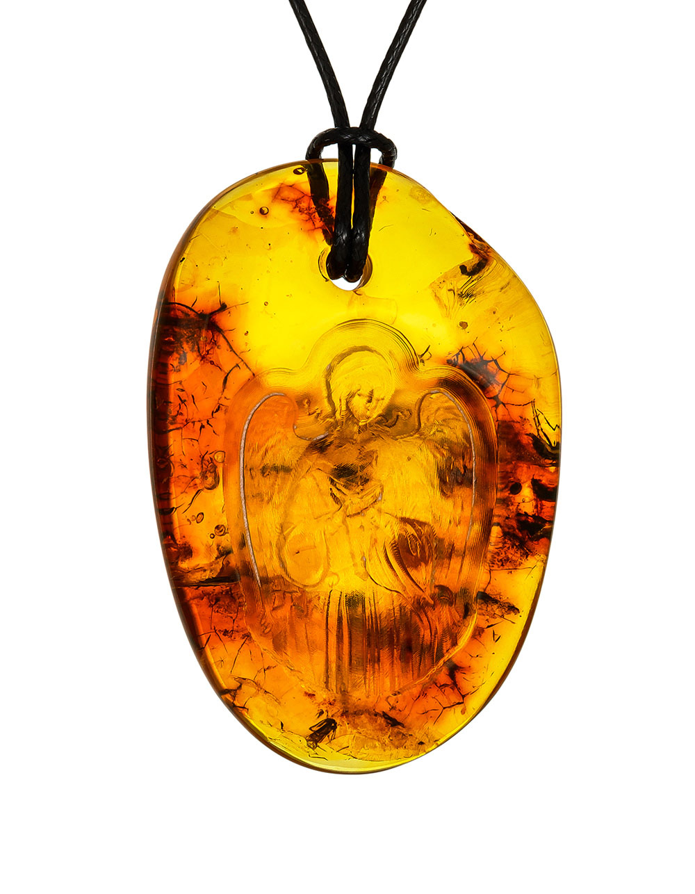 Кулон из натурального балтийского янтаря с резьбой «Ангел-Хранитель»