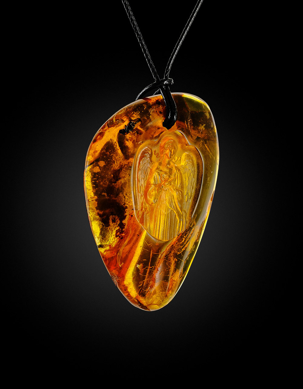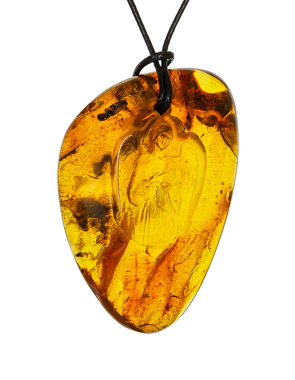 Кулон из натурального балтийского янтаря с резьбой «Ангел-Хранитель»