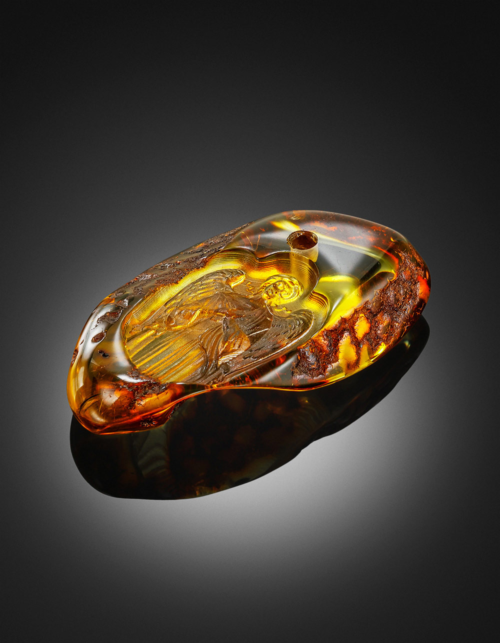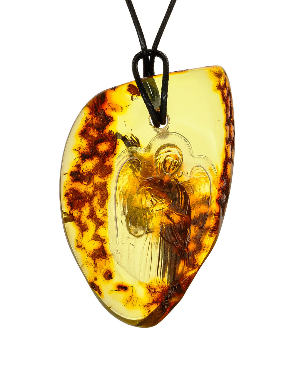 Кулон из натурального балтийского янтаря с резьбой «Ангел-Хранитель»