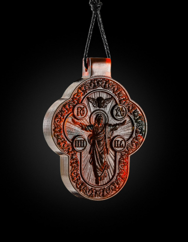 Кулон из золотистого янтаря с резьбой «Святой Георгий Победоносец»