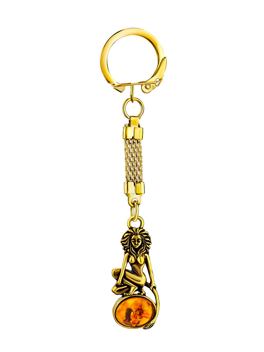«Лев». Брелок с вставкой из натурального коньячного янтаря