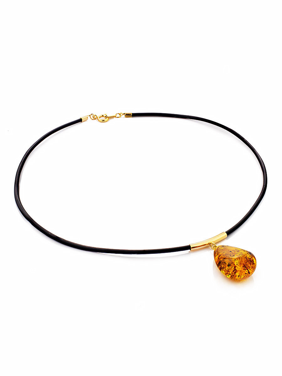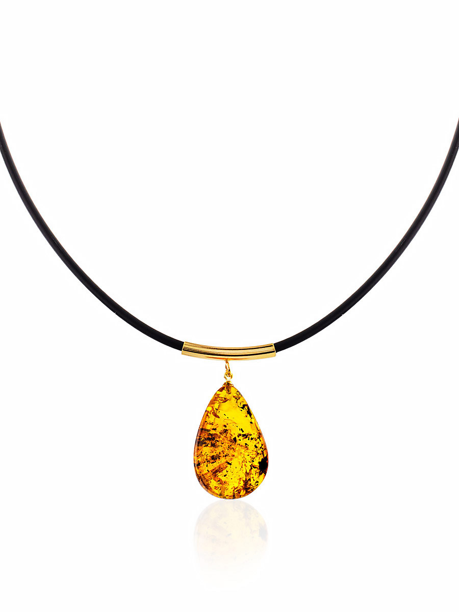 Представляем вам серию изящных кулонов из натурального балтийского янтаря на каучуковом шнурке. Необычная завеска из позолоченного металла придаёт украшениям оригинальный и изысканный вид. _x000D_
