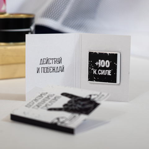 Внутри открытки - 1 шоколадка (вес 5 г., размер: 31 х 31 мм.)