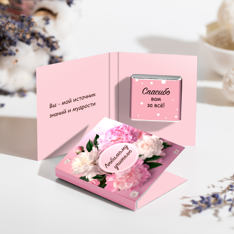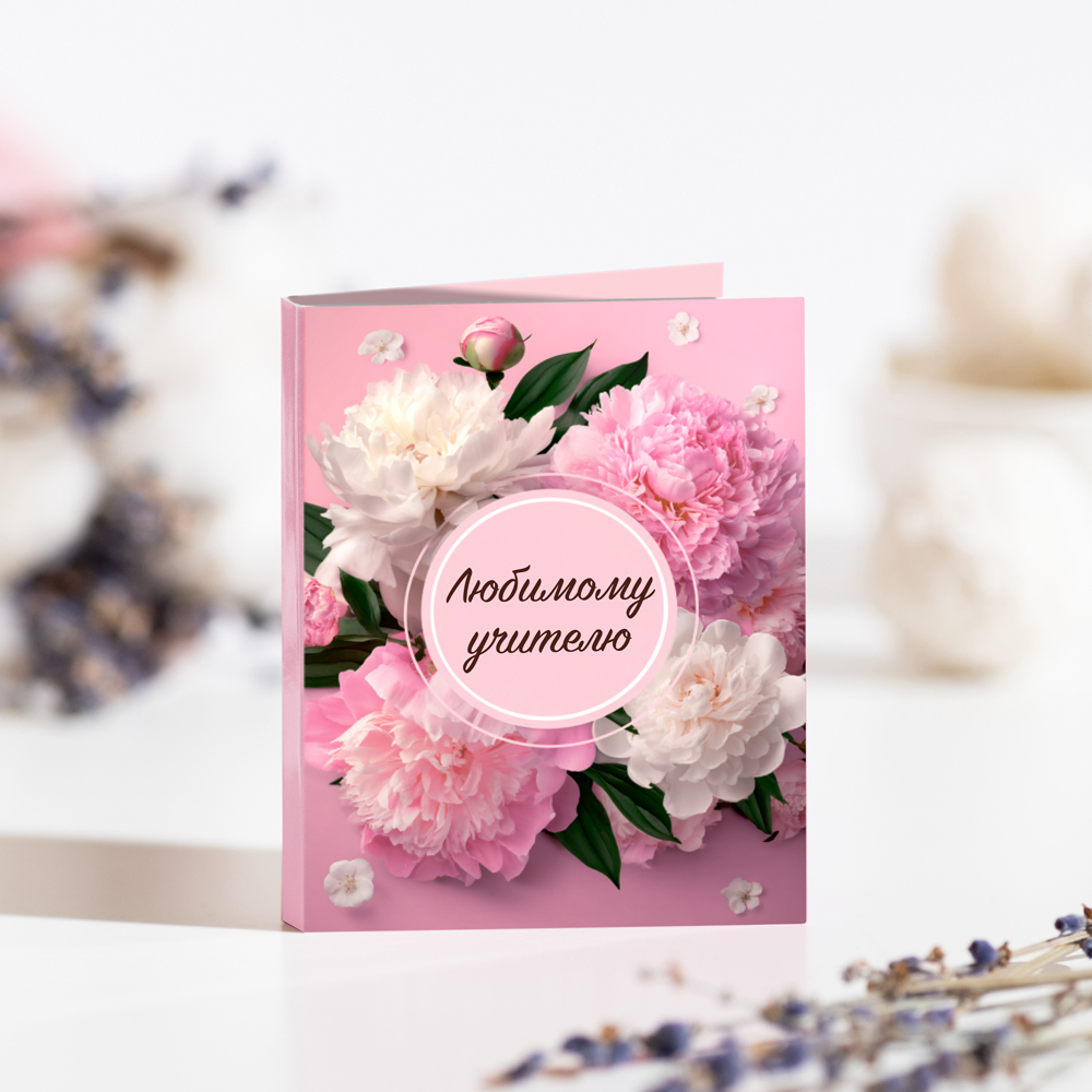 Мини-открытка "Любимому учителю (цветы пионы)"
